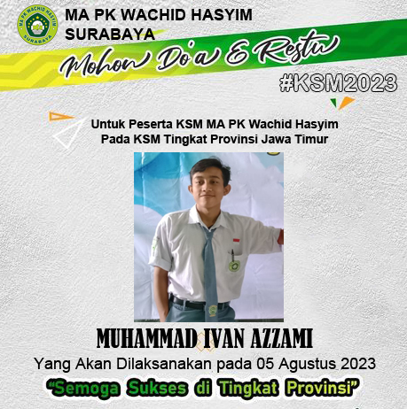 Mohon doa dan restunya untuk Muhammad Ivan Azzami mengikuti KSM tingkat Provinsi di MAN Kota Surabaya