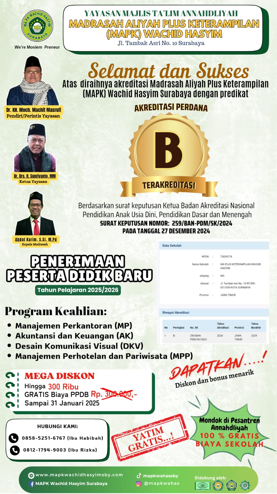 PPDB MA PLUS KETRAMPILAN WACHID HASYIM SURABAYA 2025/2026 admin Januari 3, 2025 INFO PPDB 0 Comments You Might Also Like INFO PPDB 2023/2024 Mei 15, 2023 INFORMASI PPDB TAHUN PELAJARAN 2025/2026 Desember 14, 2024 Tinggalkan Balasan Batalkan balasan Simpan nama, email, dan situs web saya pada peramban ini untuk komentar saya berikutnya.