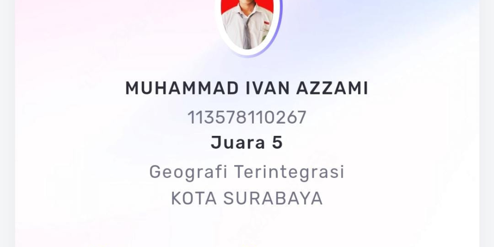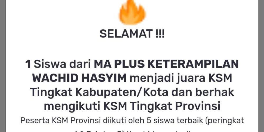 SELAMAT BUAT M. IVAN AZZAMI JUARA 5 KSM TINGKAT SURABAYA admin Juli 21, 2023 PRESTASI SISWA 0 Comments Pembagian piagam juara ksm ini dilaksanakan di Kantor kemenag surabaya pada hari jumat tanggal 20 juli 2023 You Might Also Like KOMPETISI SAINS MADRASAH TINGKAT KOTA SURABAYA2023 Juli 10, 2023 Mohon Do’a dan Restu KSM Provinsi Agustus 5, 2023 JUARA WIRA III TINGKAT PROVINSI TAHUN 2025 November 29, 2025 Tinggalkan Balasan Batalkan balasan Simpan nama, email, dan situs web saya pada peramban ini untuk komentar saya berikutnya.