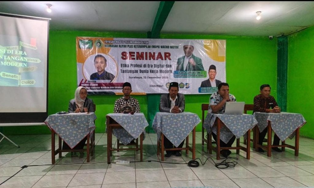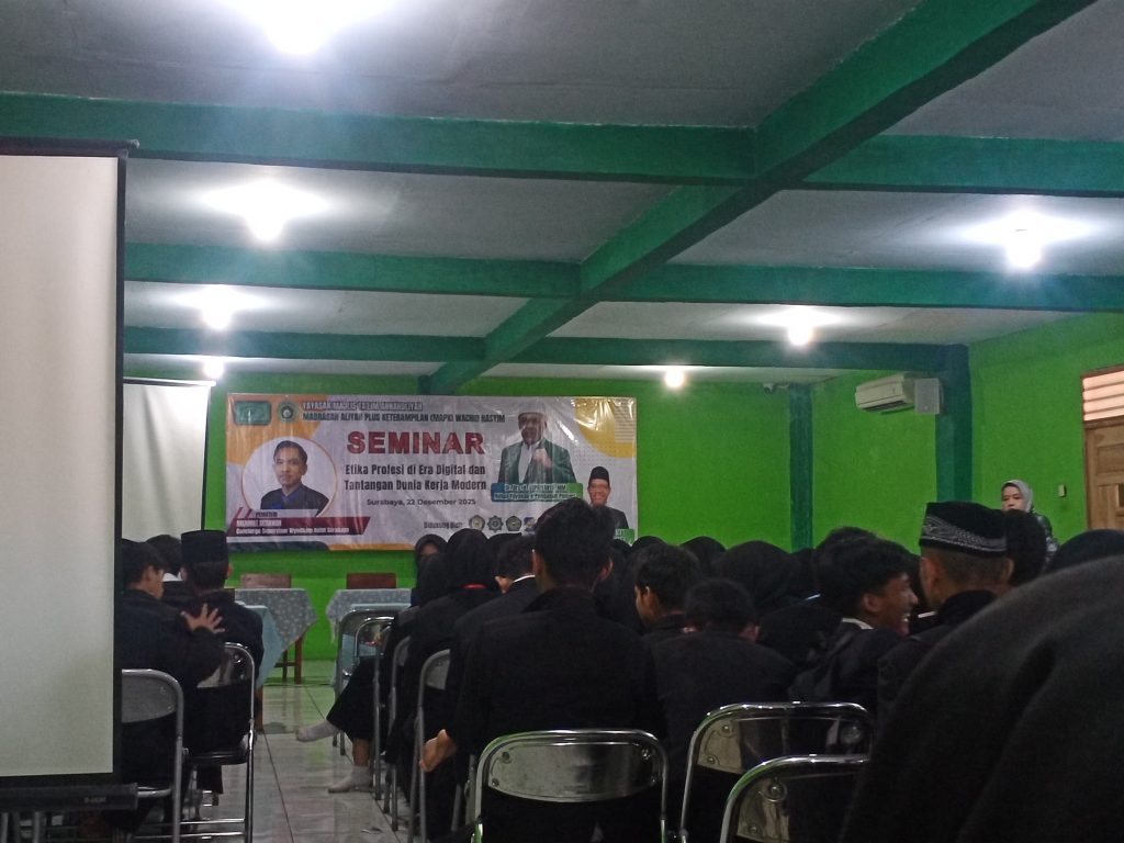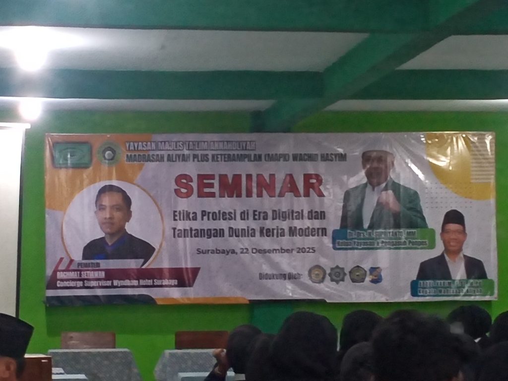 Surabaya — MAPK Wachid Hasyim Surabaya menyelenggarakan kegiatan Seminar Pra Magang dengan tema “Etika Profesi di Era Digital dan Tantangan Dunia Kerja Modern” pada Senin, 22 Desember 2025. Kegiatan ini diikuti oleh peserta didik kelas X, XI, dan XII sebagai bagian dari pembekalan awal sebelum memasuki dunia kerja dan pelaksanaan program magang.